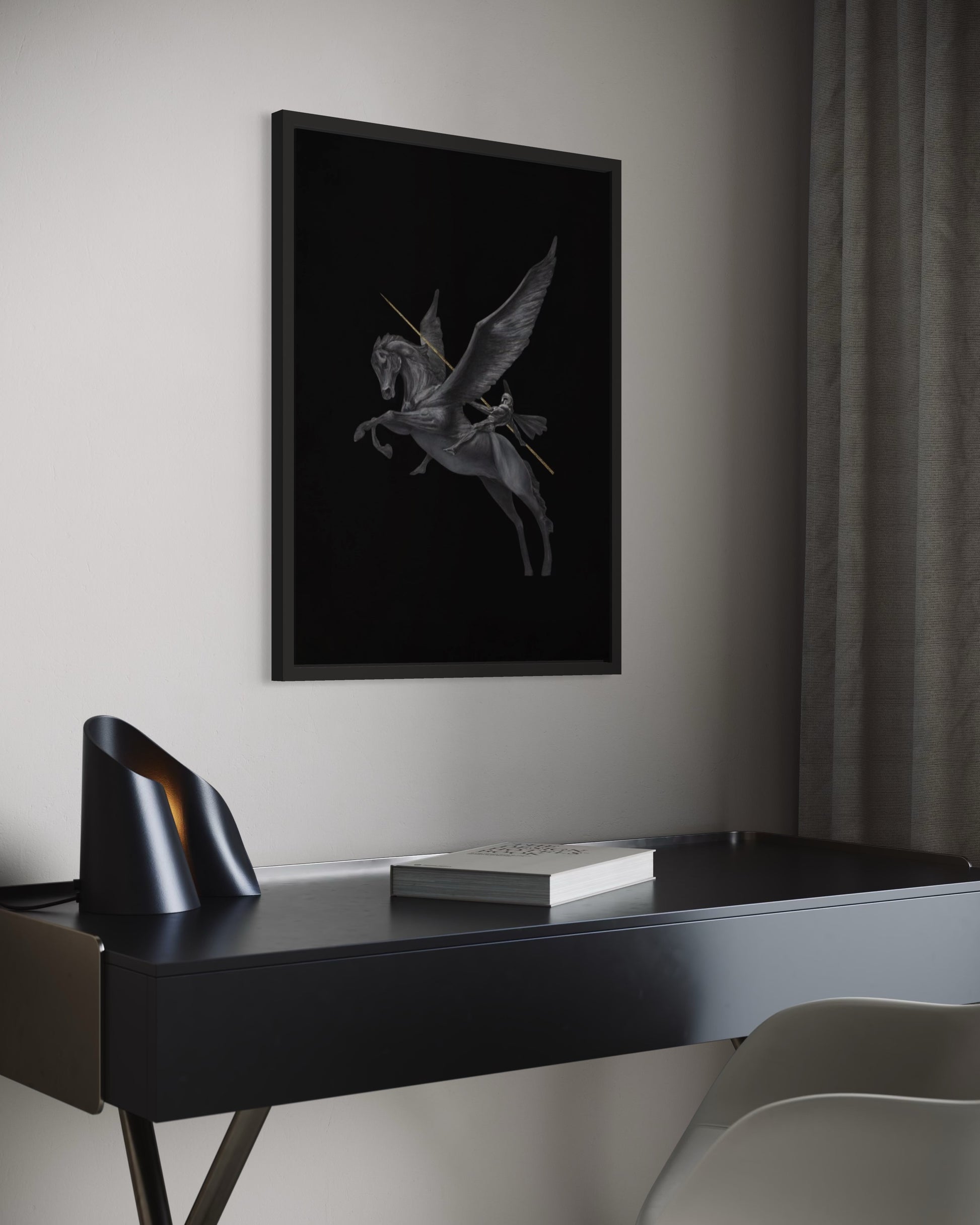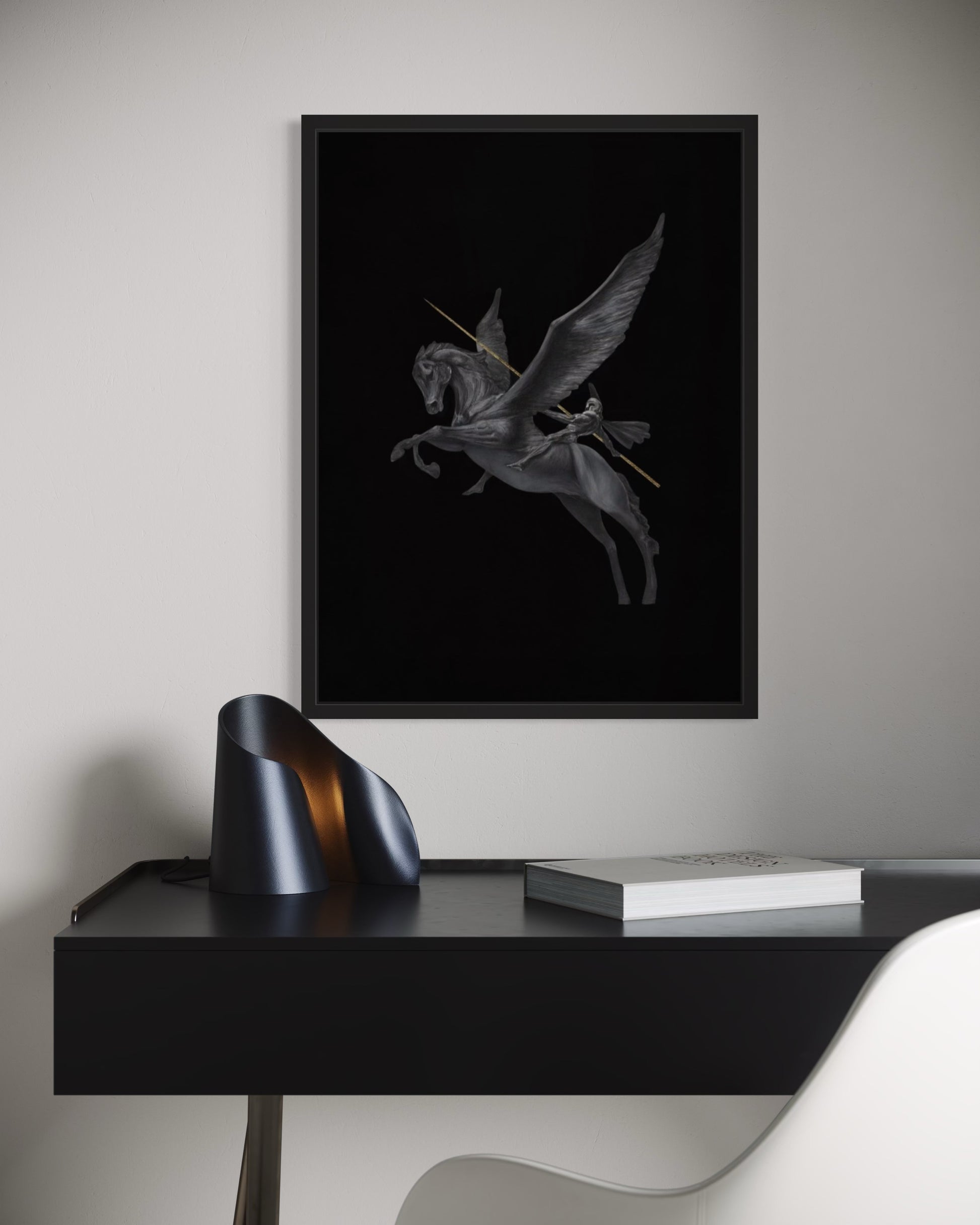 A powerful warrior and a flying horse symbolize freedom, strength, and the relentless pursuit of greatness.